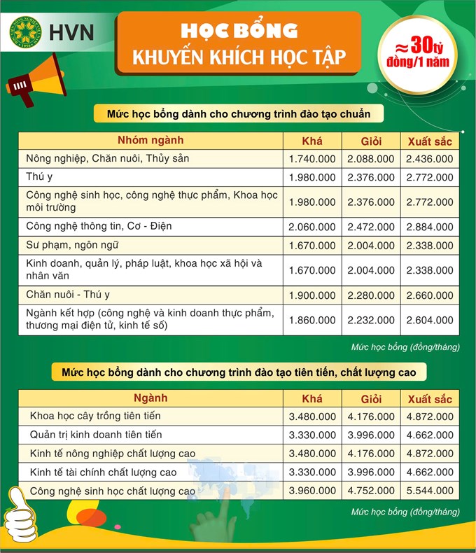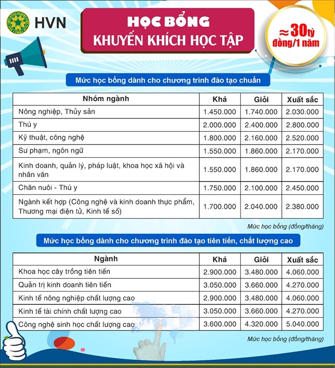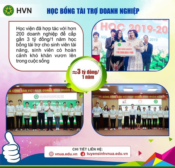 Học viện Nông nghiệp Việt Nam (trước đây là Trường Đại học Nông nghiệp I) được thành lập ngày 12 tháng 10 năm 1956. Với ưu thế được học tập, nghiên cứu tại trường trọng điểm quốc gia, sinh viên Học viện không chỉ được thụ hưởng chương trình đào tạo chất lượng cao, môi trường học tập thân thiện, đội ngũ cán bộ tâm huyết với nghề mà còn có cơ hội tiếp cận nhiều chương trình học bổng hấp dẫn.