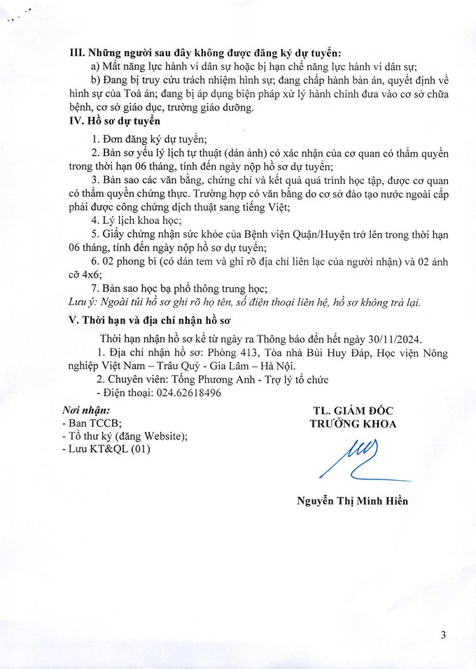 Tuyển dụng hợp đồng lao động làm nhiệm vụ giảng dạy tại Khoa Chăn nuôi