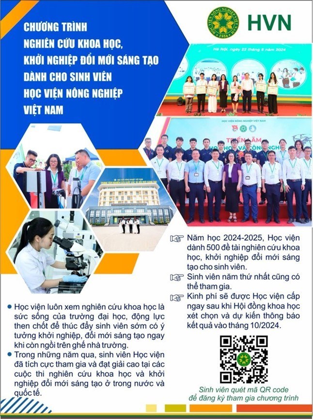 Sinh viên đăng ký tham gia chương trình nghiên cứu khoa học, khởi nghiệp đổi mới sáng tạo TẠI ĐÂY hoặc quét mã QR để đăng ký.