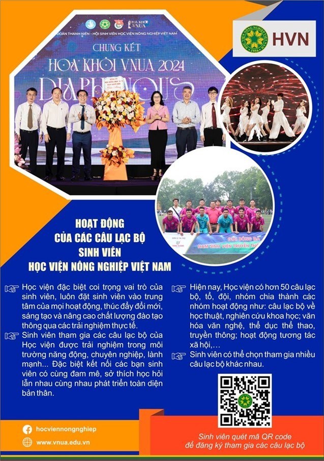 Học viện Nông nghiệp Việt Nam là một trong những trường đại học có hoạt động và mạng lưới rộng lớn các câu lạc bộ, tổ, đội, nhóm được tổ chức đa dạng và năng động, góp phần tích cực vào sự phát triển toàn diện về kiến thức, kỹ năng, thái độ của sinh viên Học viện.
