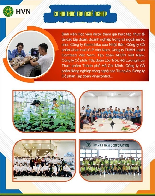 Theo học tại Học viện, sinh viên được tham gia thực tập, thực tế tại các tập đoàn/doanh nghiệp trong và ngoài nước, qua đó, tích lũy thêm kiến thức chuyên môn, kỹ năng mềm phục vụ hoạt động học tập, công việc.