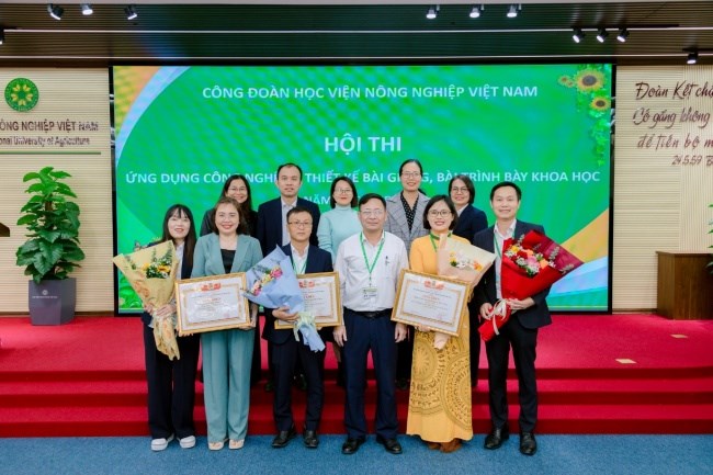 Ngày 18/11/2025, tại Hội trường Nguyệt quế, đã diễn ra vòng Chung kết Hội thi Ứng dụng công nghệ số thiết kế bài giảng, bài trình bày khoa học năm học 2025-2026 chào mừng kỷ niệm 43 năm Ngày nhà giáo Việt Nam 20/11 do Công đoàn Học viện Nông nghiệp Việt Nam tổ chức. Tham dự Hội thi là các giảng viên của Học viện, học viên và sinh viên tham gia nghe giảng tương tác trực tiếp tại Hội trường.