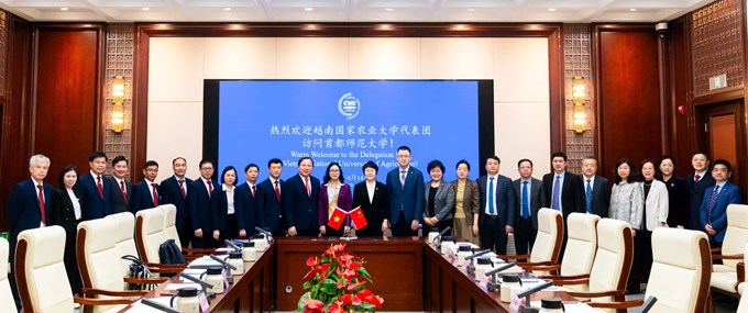 Bà Tào Văn Quân - Bí thư Đảng ủy CNU cho biết: CNU thành lập năm 1954; về lĩnh vực giáo dục, sư phạm là trường có ảnh hưởng lớn trên toàn quốc của Trung Quốc. Trường có 60 ngành Đại học, 46 ngành Thạc sĩ, 23 ngành Tiến sĩ. Hiện nay trường đang đào tạo 25.000 sinh viên, học viên cao học và nghiên cứu sinh. Nhà trường đảm nhiệm sứ mạng đào tạo trên 50% nguồn nhân lực giáo viên của Thủ đô Bắc Kinh. Nhà trường có trên 200 dự án hợp tác với 54 quốc gia. CNU đã đào tạo 180 sinh viên Việt Nam (đại học, thạc sĩ và tiến sĩ), nhiều lưu học sinh tốt nghiệp CNU đã đạt nhiều thành tích xuất sắc trong sự nghiệp. Năm 2007, CNU đào tạo Hán ngữ quốc tế, năm 2009 đào tạo tiến sĩ Hán ngữ Quốc tế, năm 2024 đào tạo tiến sĩ quốc tế ngành Ngôn ngữ Trung Quốc. Ngoài ra, CNU cũng có thế mạnh về đào tạo các ngành liên quan đến nông nghiệp như công nghệ sinh học, thực vật học… CNU luôn coi trọng việc hợp tác đào tạo ngôn ngữ Trung Quốc, qua đó thúc đẩy giáo dục nhân văn quốc tế. Bà Tào Văn Quân đánh giá 2 trường có không gian rộng mở để hợp tác trong lĩnh vực nông nghiệp. Trong thời gian tới, hai bên sẽ hợp tác và phát huy tốt việc đào tạo tiếng Trung gắn với các chuyên môn khác như: Tiếng Trung và du lịch; Tiếng Trung và khoa học nông nghiệp, Tiếng Trung và sư phạm địa lý,…