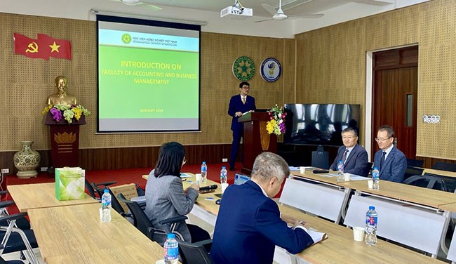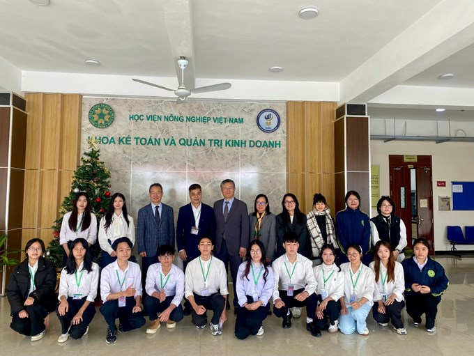 Ngày 14/01/2026, đoàn công tác Trường Đại học Toàn cầu Handong (Handong Global University) và Trường Đại học Hannam (Hannam University), Hàn Quốc đã đến thăm và làm việc với Khoa Kế toán và Quản trị kinh doanh, Học viện Nông nghiệp Việt Nam. Mục đích của chuyến thăm và làm việc là nhằm tăng cường hợp tác nghiên cứu khoa học giữa Khoa Kế toán và Quản trị kinh doanh và các trường đại học Hàn Quốc. Đoàn đại biểu từ các trường đại học Hàn Quốc gồm GS.TS. Jinwon Ahn – Viện Trưởng Viện Hợp tác phát triển quốc tế, giảng viên Khoa Kinh tế và Quản trị, Trường Đại học Toàn cầu Handong và GS.TS. Jongwoon Kim – Giảng viên Khoa Toàn cầu Linton, Trường Đại học Hannam. Tham dự chương trình, về phía Khoa Kế toán và Quản trị kinh doanh có PGS.TS. Đỗ Quang Giám – Trưởng Khoa, PGS.TS. Nguyễn Anh Trụ – Bí thư Chi bộ, Phó Trưởng Khoa, TS. Phí Thị Diễm Hồng – Phó Trưởng Khoa, các giảng viên và sinh viên trong Khoa.