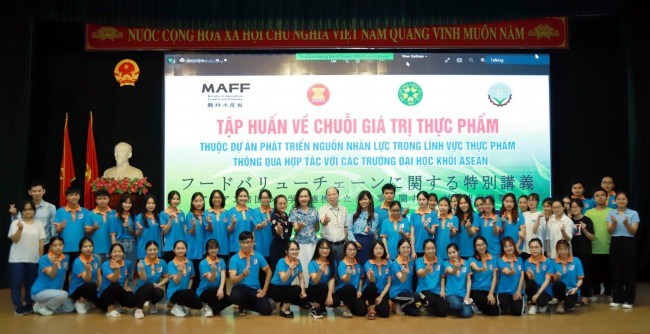 Trong khuôn khổ Dự án “Phát triển nguồn nhân lực trong lĩnh vực thực phẩm thông qua hợp tác giữa Nhật Bản với các trường đại học khối ASEAN” do Bộ Nông – Lâm – Ngư Nhật Bản và Bộ Nông nghiệp và Phát triển Nông thôn Việt Nam chủ trì, từ ngày 04/07/2022 đến ngày 15/07/2022, Học viện Nông nghiệp Việt Nam đã tổ chức thành công khóa tập huấn về Chuỗi giá trị thực phẩm. Do ảnh hưởng của dịch Covid 19, các giảng viên Nhật Bản đã giảng dạy và hướng dẫn online, còn lớp học chính được tổ chức tại Học viện Nông nghiệp Việt Nam, kết hợp hình thức học online với học viên ở các tỉnh thành khác trên cả nước.