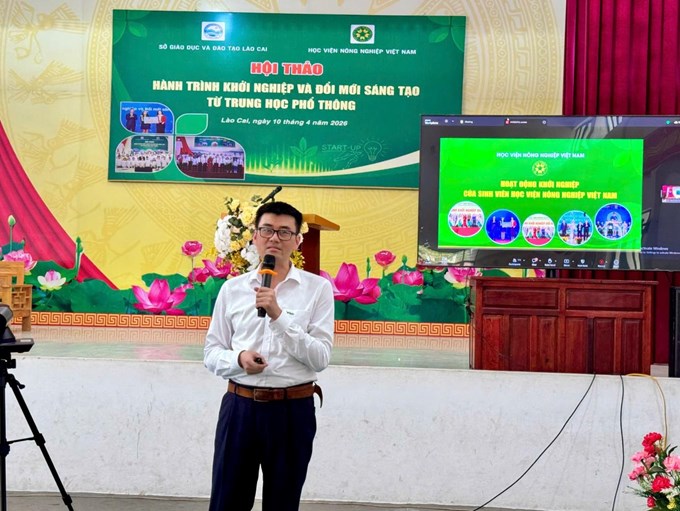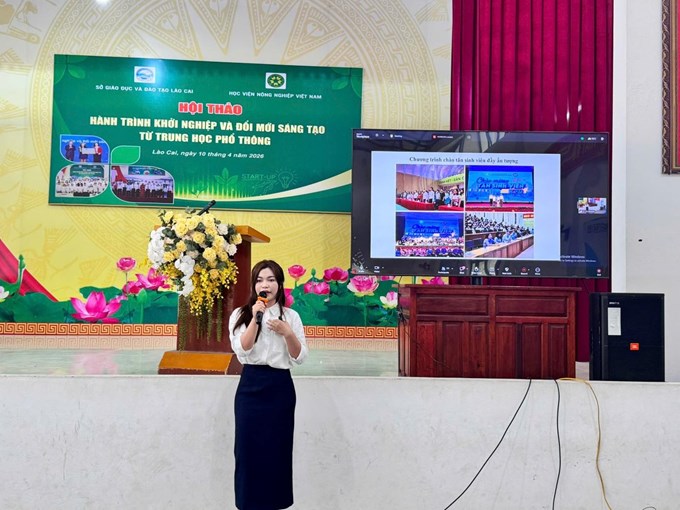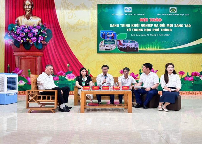 Ngày 10/04/2026, Sở Giáo dục và Đào tạo tỉnh Lào Cai phối hợp với Học viện Nông nghiệp Việt Nam tổ chức Hội thảo “Hành trình khởi nghiệp và Đổi mới sáng tạo từ trung học phổ thông” tại Trường Phổ thông Dân tộc nội trú - THPT Miền Tây và truyền trực tuyến trên nền tảng Zoom Meetings cho gần 1.000 giáo viên và hơn 9.000 học sinh trên địa bàn.