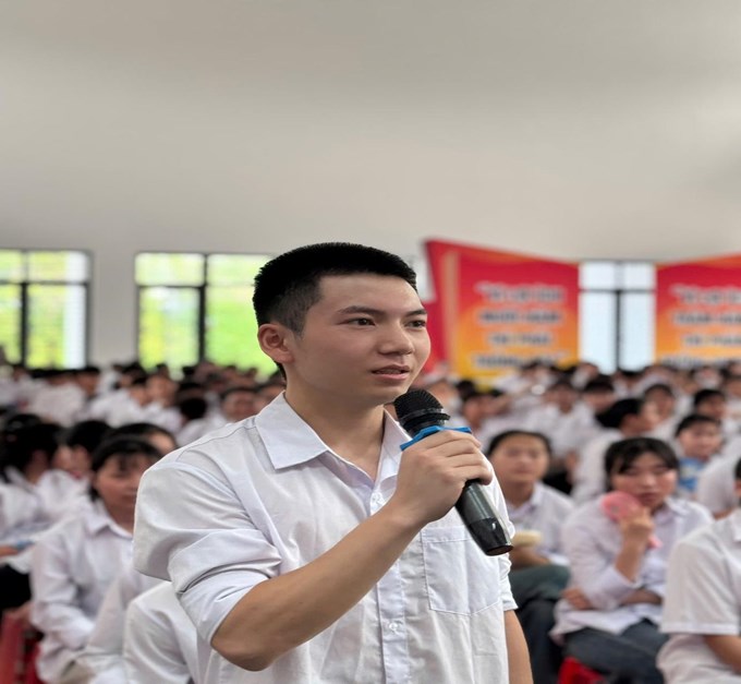 | Học sinh THPT đặt câu hỏi tới khách mời tham gia tọa đàm |