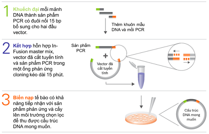 | Hình 2. Các bước thực hiện chuyển gen khi áp dụng phương pháp Gibson Assembly |