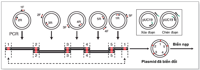 | Hình 3. Phương pháp chèn 5 đoạn DNA vào vector bằng phương pháp Gibson Assembly |