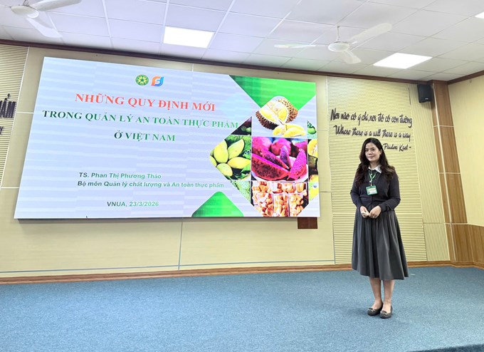 Khai mạc chương trình Seminar khoa học tháng 03 năm 2026 được bắt đầu với bài trình bày của PGS.TS. Nguyễn Thị Thanh Thủy, Bộ môn Quản lý chất lượng và An toàn thực phẩm với chủ đề: “Kiểm soát vi sinh vật trong bảo quản rau quả tươi ở nhiệt độ thường và ý nghĩa đối với an toàn thực phẩm”.