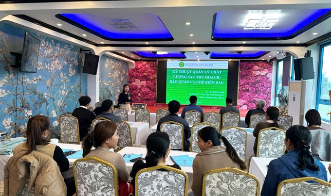 Chuyên gia tập huấn của lớp học, TS. Vũ Thị Kim Oanh – Giảng viên Khoa Công nghệ thực phẩm – Học viện Nông nghiệp Việt Nam đã chia sẻ cho học viên về kỹ thuật quản lý chất lượng sau thu hoạch, bảo quản và chế biến rau. Cụ thể, TS. Oanh đã đề cập tới: (1) Thực trạng tổn thất sau thu hoạch rau tươi ở Việt Nam và trên thế giới; (2) Các nguyên nhân gây tổn thất rau tươi và (3) Ứng dụng công nghệ quản lý chất lượng, bảo quản và chế biến rau tươi sau thu hoạch. Đặc biệt tập trung vào các công đoạn cơ bản trong quy trình bảo quản và chế biến rau: (i) Đánh giá, kiểm tra chất lượng rau tươi; (ii) Tìm hiểu đặc điểm rau tươi; (iii) Sơ chế và chế biến tối thiểu rau tươi; (iv) Đóng gói sau sơ chế và chế biến rau tươi; (v) Bảo quản rau tươi và (vi) Công nghệ chế biến một số các sản phẩm cơ bản từ rau tươi.