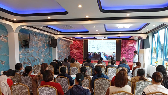 | TS. Vũ Thị Kim Oanh – Giảng viên Khoa Công nghệ thực phẩm – Học viện Nông nghiệp Việt Nam trao đổi tại lớp tập huấn |