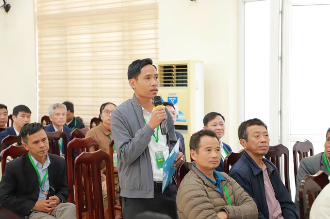 Người dân, hợp tác xã đặt câu hỏi tại Hội nghị: "Giải pháp môi trường và phát triển nông nghiệp ngoại thành Hà Nội" do Học viện Nông nghiệp Việt Nam phối hợp với UBND xã Ứng Thiên (Hà Nội) tổ chức ngày 10/3.