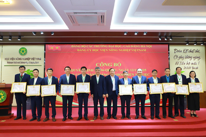 Nhân dịp này, Đảng ủy Học viện đã tổ chức trao giấy khen của Đảng bộ các trường Đại học, Cao đẳng Hà Nội cho 10 tập thể, cá nhân hoàn thành xuất sắc nhiệm vụ 5 năm liên tục; giấy khen của Đảng bộ Học viện cho 11 chi bộ hoàn thành xuất sắc nhiệm vụ năm 2025 và 56 tập thể, cá nhân có thành tích tiêu biểu trong tổ chức Đại hội Đại biểu Đảng bộ Học viện khóa XXXI, nhiệm kỳ 2025-2030.
