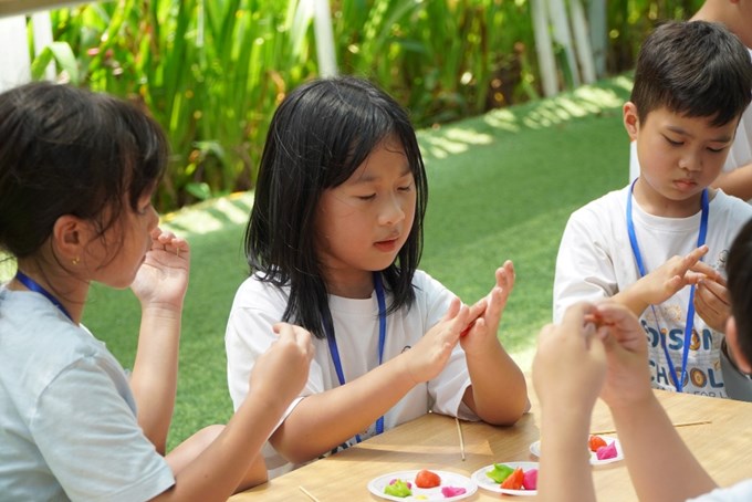 Các em học sinh trải nghiệm lần đầu được nặn tò he |