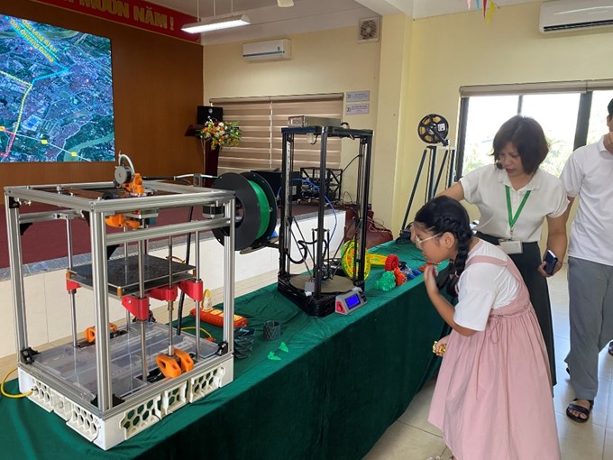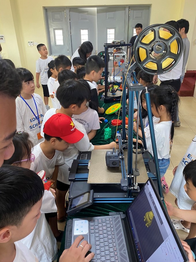 Sau các trải nghiệm đầy hứng khởi tại VECO, các em được tiếp cận giáo dục trải nghiệm với chủ đề Robotics tại Khoa Cơ điện. Tại đây, học sinh được làm quen với nguyên lý hoạt động và lập trình robot đơn giản, quan sát cánh tay robot, robot di động; tận mắt chứng kiến công nghệ in 3D, khắc laser và mãn nhãn với màn trình diễn drone trong nhà. Những hoạt động này không chỉ khơi gợi niềm say mê, khám phá khoa học công nghệ mà còn giúp các em hình dung ứng dụng của khoa học công nghệ trong thực tiễn trong đời sống.