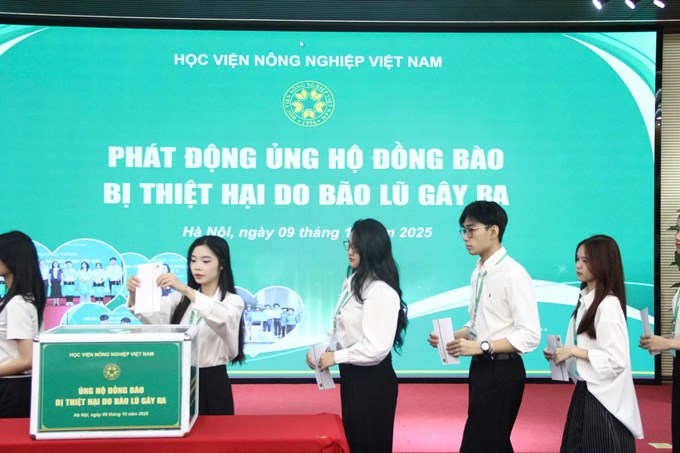 Học viện Nông nghiệp Việt Nam sẽ thành lập 6 đoàn công tác gồm cả sinh viên đến thăm hỏi tặng quà (hạt giống, thực phẩm thiết yếu) trực tiếp tại 6 tỉnh bị ảnh hưởng nặng nề do mưa lũ sau cơn bão số 10, 11.