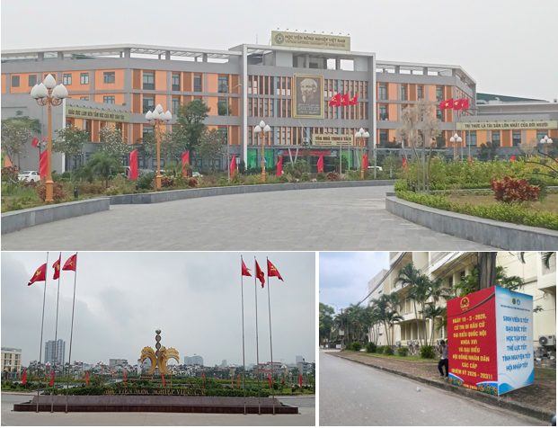Khuôn viên tươi đẹp của Học viện Nông nghiệp Việt Nam có hệ thống hồ nước, vườn cây, thảm cỏ, với các tuyến đường rợp bóng cây xanh… Tuyến đường trung tâm và vực khu trung tâm của Học viện là điểm đầu của 02 tuyến xe buýt công cộng kết nối về trung tâm Thủ đô và về khu trung tâm phía Đông Bắc của thành phố. Giữa khuôn viên thân quen ấy, dọc mỗi tuyến đường đi tới giảng đường, đến công sở, qua khu tập thể thao… bỗng rực rỡ bởi màu của cờ, của băng rôn, hồng kỳ… trong Ngày hội của non sông. Cảnh quan vốn thân quen nay trở nên trẻ trung, sinh động và giàu sức sống như lứa tuổi thanh xuân, mười tám, đôi mươi của mỗi sinh viên Học viện.