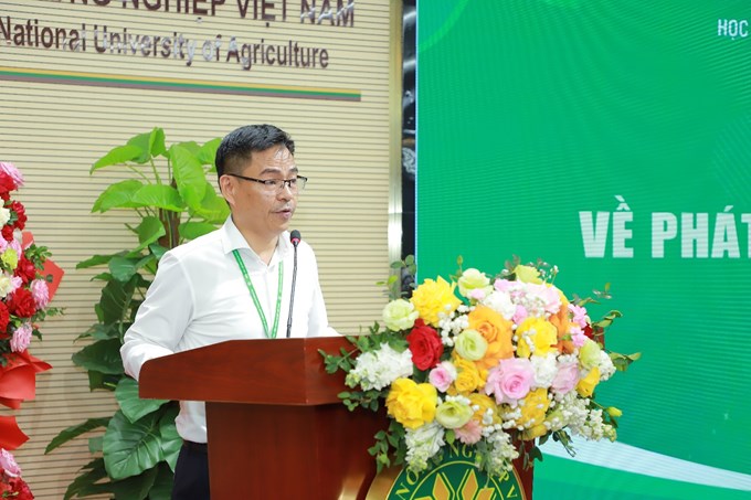 | PGS.TS. Trần Hiệp - Trưởng Ban Khoa học và Công nghệ của Học viện trình bày một số nội dung hợp tác giữa Học viện Nông nghiệp Việt Nam và xã Gia Lâm |