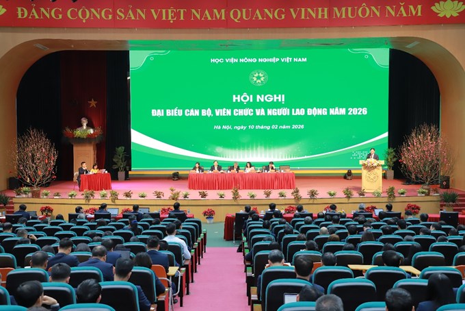Chiều ngày 10/02/2026, Học viện Nông nghiệp Việt Nam tổ chức Hội nghị đại biểu cán bộ, viên chức và người lao động năm 2026. Hội nghị là dịp để Học viện đánh giá kết quả thực hiện nhiệm vụ năm 2025, thảo luận phương hướng, nhiệm vụ năm 2026; đồng thời phát huy quyền làm chủ, tăng cường tinh thần trách nhiệm và sự đồng thuận của đội ngũ cán bộ, viên chức và người lao động trong quá trình xây dựng và phát triển Học viện.