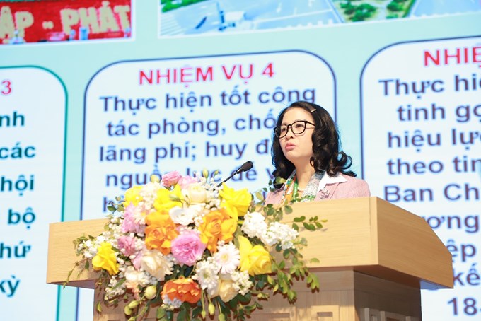 | GS.TS. Nguyễn Thị Lan - Đại biểu Quốc hội, Bí thư Đảng ủy, Giám đốc Học viện trình bày Báo cáo tổng kết thực hiện nhiệm vụ năm 2025 và phương hướng, nhiệm vụ năm 2026 |