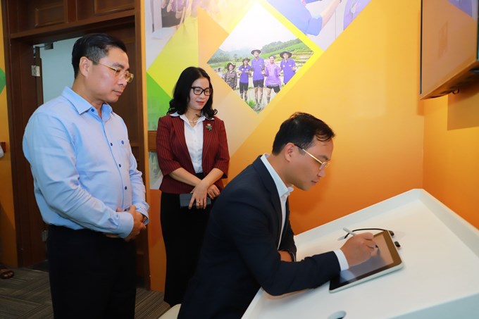 Trước khi diễn ra Hội nghị, đoàn công tác xã Ứng Hòa đã tham quan Phòng Truyền thống của Học viện Nông nghiệp Việt Nam. Tại đây, đồng chí Nguyễn Tiến Thiết - Thành ủy viên, Bí thư Đảng ủy xã đã ghi những dòng lưu bút điện tử, thể hiện sự trân trọng đối với truyền thống, uy tín và những đóng góp to lớn của Học viện trong sự nghiệp phát triển nông nghiệp, nông thôn.
