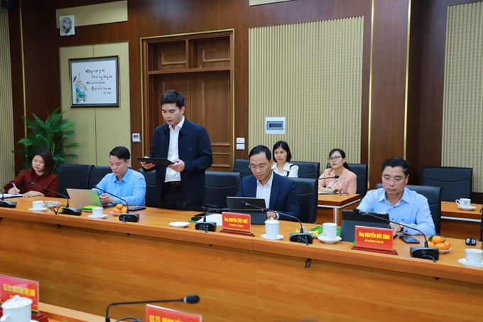 | Đồng chí Nguyễn Phi Hoàng - Trưởng phòng Kinh tế xã Ứng Hòa phát biểu tại Hội nghị |