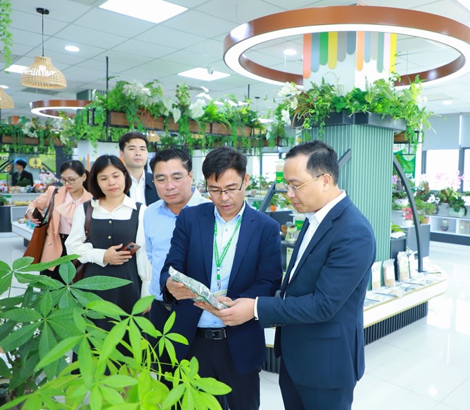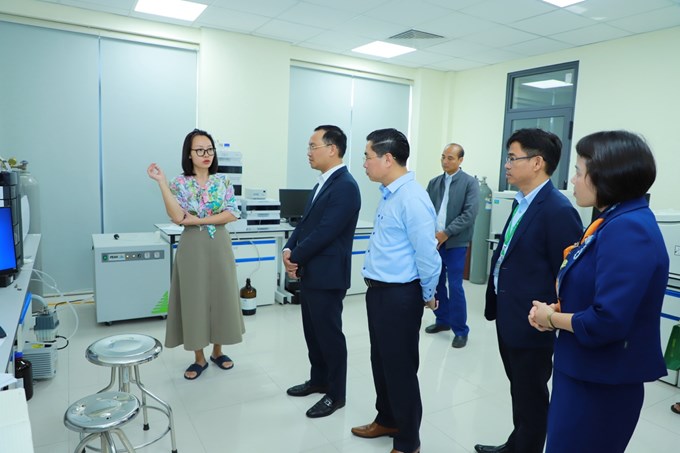 | Đoàn công tác của xã Ứng Hòa nghe giới thiệu sản phẩm nổi bật về nghiên cứu khoa học và tham quan các phòng nghiên cứu, phòng thí nghiệm của Học viện |