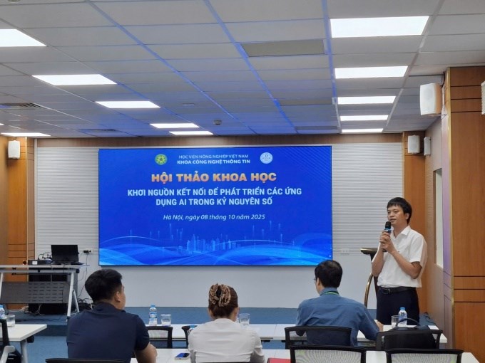 Sáng ngày 08/10/2025, tại Phòng 310 – Trung tâm Nghiên cứu xuất sắc và Đổi mới sáng tạo, Khoa Công nghệ thông tin – Học viện Nông nghiệp Việt Nam đã tổ chức hội thảo khoa học với chủ đề “Khơi nguồn kết nối để phát triển các ứng dụng AI trong kỷ nguyên số”. Hội thảo được tổ chức thuộc chuỗi sự kiện kỷ niệm 20 năm thành lập Khoa Công nghệ thông tin, Học viện Nông nghiệp Việt Nam.