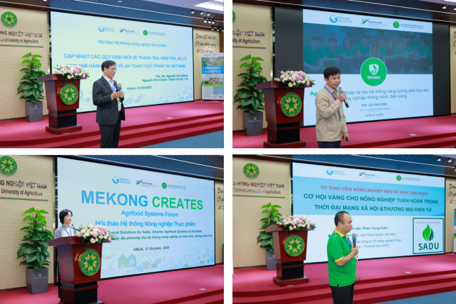 Đại diện Học viện Nông nghiệp Việt Nam, GS.TS. Phạm Văn Cường, Phó Giám đốc đã cảm ơn sự hợp tác của Viện Mekong và các tổ chức hỗ trợ, khẳng định vai trò tiên phong của Học viện trong nghiên cứu, đào tạo và đổi mới sáng tạo vì nông nghiệp bền vững. Học viện tự hào đóng góp vào các lĩnh vực an toàn thực phẩm, hệ thống chăn nuôi bền vững và nông nghiệp thông minh, qua đó hiện thực hóa cách tiếp cận Một sức khỏe – kết nối sức khỏe con người, động vật và môi trường. Diễn đàn này không chỉ là sự kiện học thuật, mà là một bước tiến trong hợp tác đa bên – nơi các nhà hoạch định chính sách, nhà khoa học, doanh nghiệp và cộng đồng cùng đồng hành để kiến tạo giải pháp thực tiễn cho nông nghiệp an toàn, thông minh và bền vững.