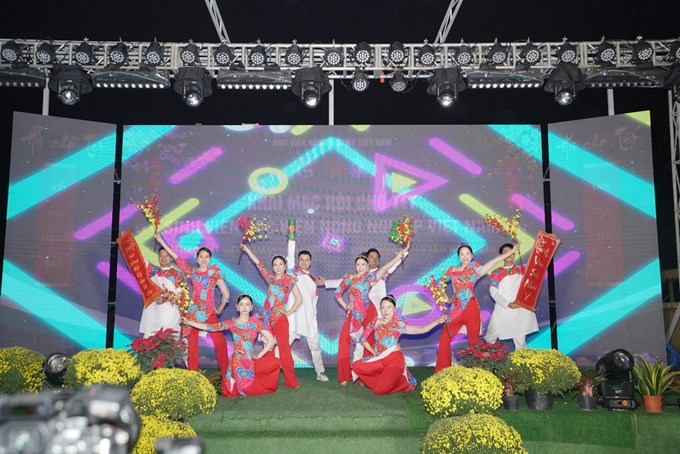 Phần cuối chương trình khai mạc Hội chợ Tết sinh viên năm 2026 là những tiết mục văn nghệ đặc sắc của Đội văn nghệ Đoàn Thanh niên Học viện. Với chủ đề “Giai điệu mùa xuân”, tuổi trẻ Học viện đã trình diễn các tác phẩm: Năm qua đã làm gì của nhạc sĩ Bùi Công Nam, Hoa cỏ mùa xuân của nhạc sĩ Bảo Chấn, Nàng xuân và Thì thầm mùa xuân của nhạc sĩ Minh Châu…