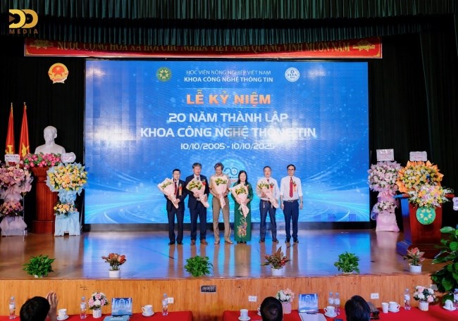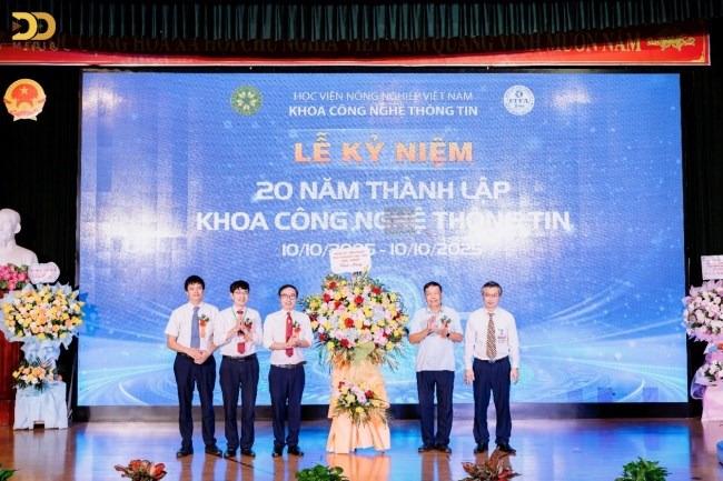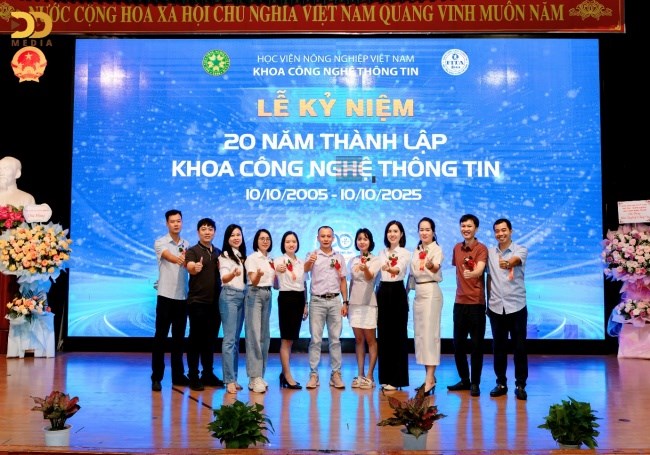 Sáng ngày 10/10/2025, được sự đồng ý của Đảng ủy, Ban Giám đốc Học viện Nông nghiệp Việt Nam, Khoa Công nghệ thông tin đã long trọng tổ chức lễ kỷ niệm 20 năm thành lập, đánh dấu chặng đường phát triển và những thành tựu đáng tự hào của khoa trong hai thập kỷ qua. Buổi lễ đã diễn ra thành công rực rỡ, góp phần gợi nhớ hành trình xây dựng và phát triển của khoa, đồng thời khơi dậy niềm tự hào và truyền cảm hứng cho các thế hệ cán bộ, giảng viên và sinh viên.