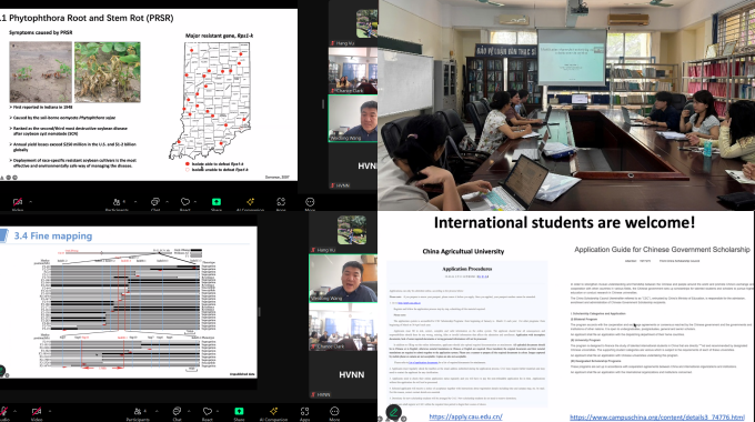 Bên cạnh đó, GS. TS. Wang cũng chia sẻ một số kết quả nghiên cứu tiêu biểu của nhóm ông và các cộng sự. Các nghiên cứu này đã xác định được nhiều locut quan trọng liên quan đến khả năng kháng sinh học trên đậu tương như kháng bệnh do Phytophthora sojae, tuyến trùng, rệp.