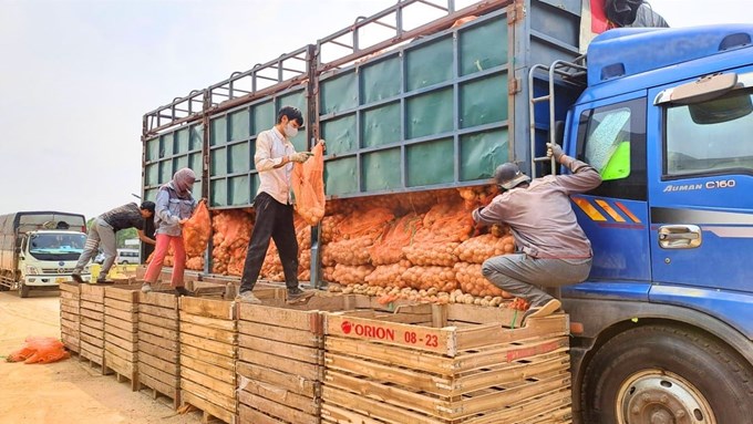 | Xe tải vận chuyển khoai tây trực tiếp từ đồng ruộng đến nhà máy Orion tại Yên Phong, Bắc Ninh. Ảnh: Bảo Ngọc. |