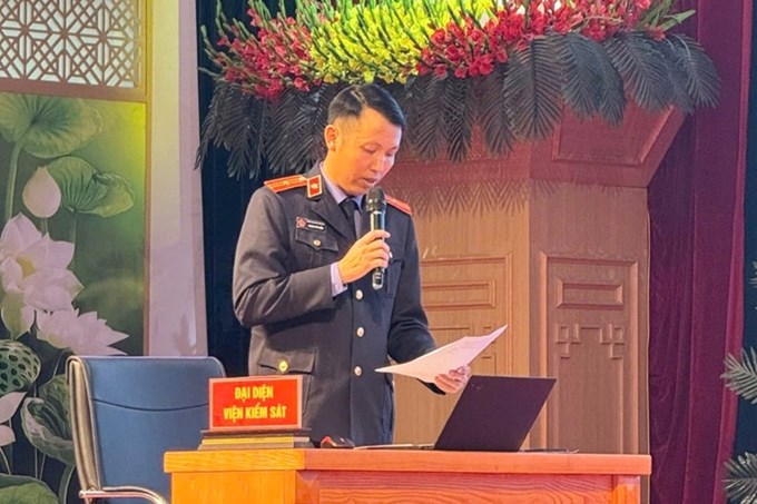 | Kiểm sát viên công bố bản cáo trạng truy tố các bị cáo. |