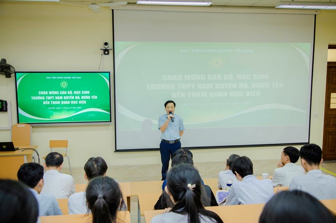 Ngày 11/10/2025, Học viện Nông nghiệp Việt Nam đã tổ chức đón tiếp gần 450 giáo viên, phụ huynh và học sinh Trường THPT Nam Duyên Hà, Hưng Yên đến tham quan tại Học viện. Nhiều năm nay, Học viện luôn đồng hành cùng các trường học trên địa bàn thành phố Hà Nội cũng như các tỉnh, thành phố trong cả nước để hỗ trợ công tác hướng nghiệp, giúp các em học sinh khám phá năng lực bản thân, lắng nghe chia sẻ về định hướng nghề nghiệp tương lai. Từ đó, các em học sinh có thể chủ động hơn trước quyết định chọn ngành, chọn trường của mình sau khi tốt nghiệp.