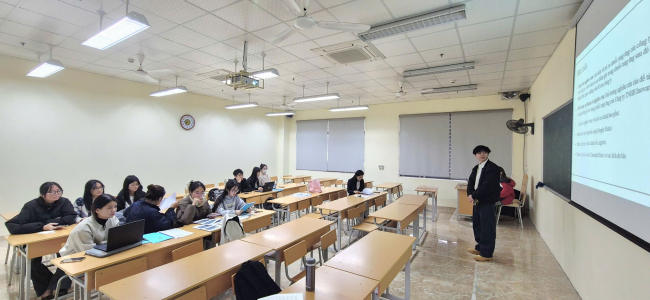 | Quang cảnh nhóm sinh viện tham dự một buổi báo cáo thực hành nghề nghiệp |