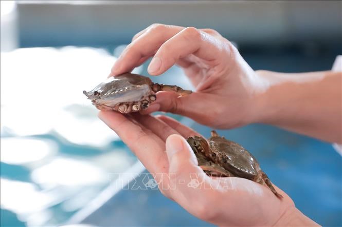 | Sinh viên được hướng dẫn nhận biết dấu hiệu tôm, cua bị stress thông qua quan sát hành vi, màu sắc và phản ứng trong hệ thống nuôi. Ảnh: Lê Đông - TTXVN |