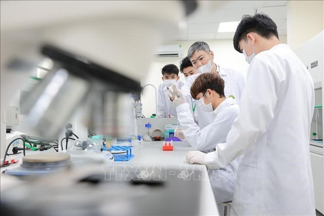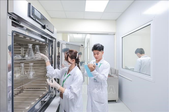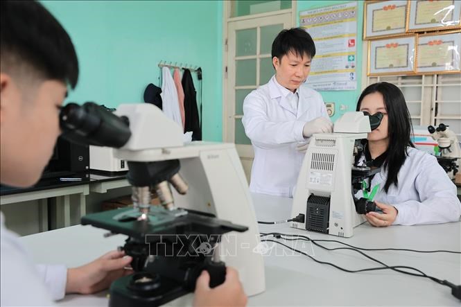 | Giảng viên cùng sinh viên triển khai các thí nghiệm, phân tích mẫu trong phòng thí nghiệm chuyên sâu, phục vụ nghiên cứu, đào tạo và nâng cao kỹ năng thực hành. Ảnh: Lê Đông - TTXVN |