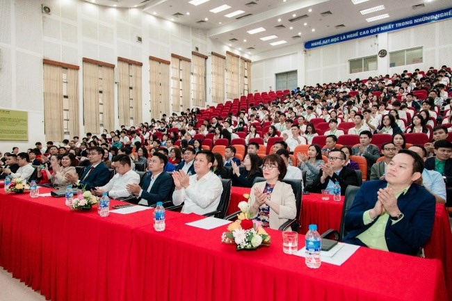Tiếp theo chương trình, PGS. TS. Hà Xuân Bộ - Phó trưởng khoa phụ trách đào tạo và công tác sinh viên, trình bày báo cáo tổng kết năm học 2024-2025. Bản báo cáo đã tóm tắt những thành tích đạt được trong giảng dạy, học tập, nghiên cứu khoa học, trao đổi sinh viên quốc tế, hoạt động Đoàn và phong trào thanh niên, đồng thời nhấn mạnh vai trò quan trọng của các doanh nghiệp trong việc hỗ trợ học bổng, hỗ trợ địa điểm thực tập cho sinh viên của Khoa.