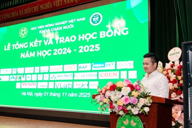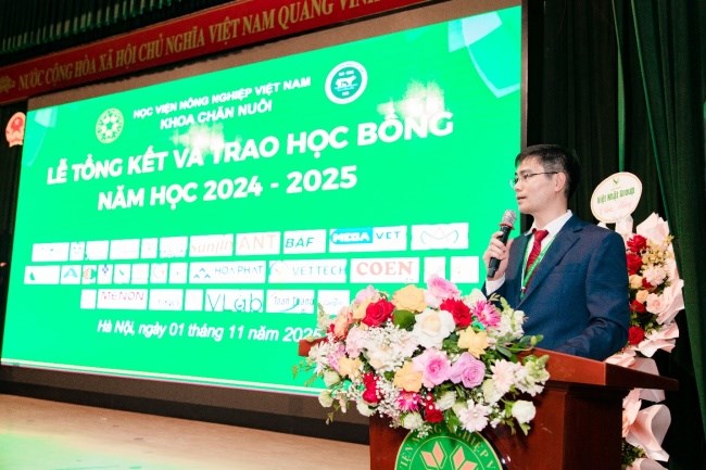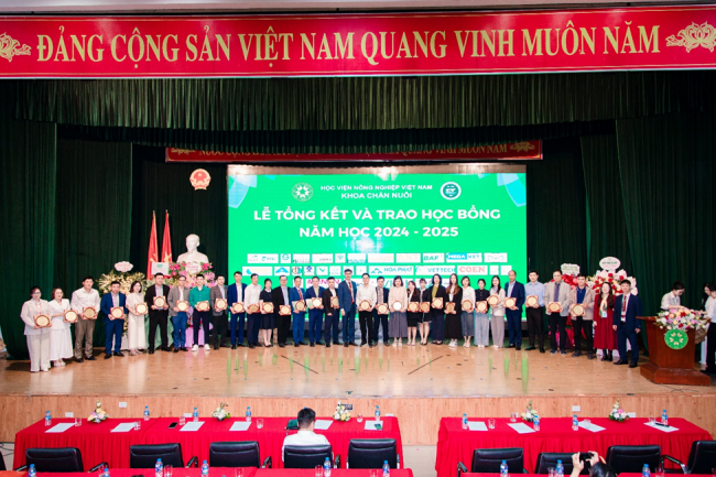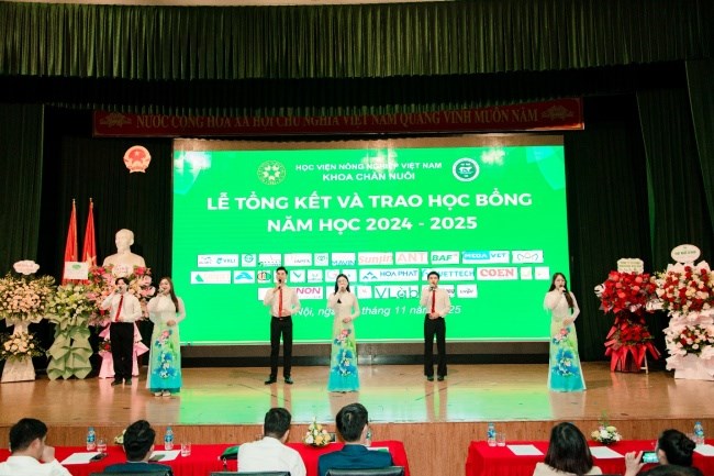 Ngày 01/11/2025, tại Hội trường A – Học viện Nông nghiệp Việt Nam, Khoa Chăn nuôi đã tổ chức Lễ Tổng kết và trao học bổng năm học 2024-2025 với sự tham dự của gần 500 sinh viên ưu tú đại diện cho toàn thể sinh viên của Khoa cùng hơn 30 doanh nghiệp đối tác và các giảng viên trong khoa. Buổi lễ là dịp để cùng nhìn lại một năm học đầy nỗ lực, ghi nhận những kết quả đáng tự hào mà tập thể cán bộ, giảng viên và sinh viên Khoa Chăn nuôi đã đạt được.