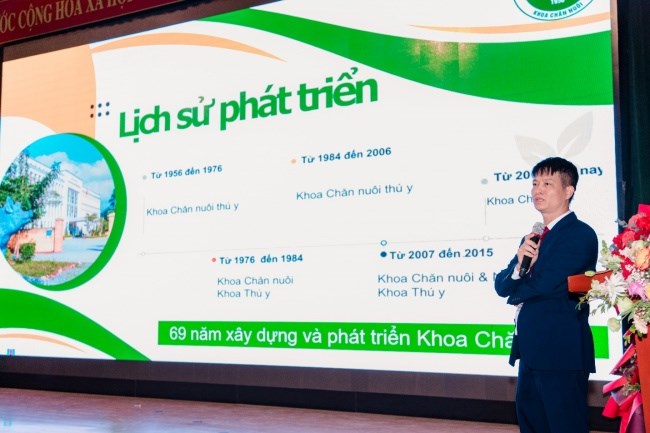 Mở đầu buổi lễ, TS. Bùi Huy Doanh – Bí thư Chi bộ, Phó trưởng khoa phụ trách Khoa Chăn nuôi, đã phát biểu khai mạc, gửi lời cảm ơn đến các giảng viên, sinh viên và các doanh nghiệp đã luôn đồng hành cùng Khoa Chăn nuôi. TS. Bùi Huy Doanh nhấn mạnh sự góp mặt của các đại diện các doanh nghiệp và các sinh viên ưu tú không chỉ là nguồn động viên lớn lao mà còn tạo nên sức mạnh đoàn kết, khích lệ cho các thế hệ sinh viên tiếp tục cố gắng nỗ lực hơn nữa để có thể trở thành những cử nhân giỏi trong lĩnh vực chăn nuôi và chăn nuôi thú y.