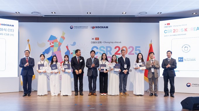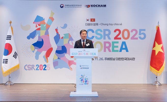 Chiều ngày 26/11, tại Hà Nội, Đại sứ quán Hàn Quốc tại Việt Nam và Hiệp hội Doanh nghiệp Hàn Quốc tại Việt Nam (KOCHAM) đã tổ chức Ngày doanh nhân Hàn Quốc thực hiện trách nhiệm xã hội (CSR). Sự kiện “Ngày CSR Hàn Quốc” do KOCHAM tổ chức từ năm 2015, là hoạt động thể hiện trách nhiệm xã hội của các doanh nghiệp Hàn Quốc đang đầu tư tại Việt Nam, giúp kết nối các sinh viên Việt Nam xuất sắc có hoàn cảnh khó khăn với các công ty Hàn Quốc.