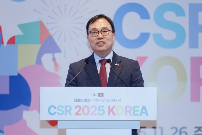 Đại sứ Choi Young Sam chia sẻ “Tin tưởng vào tiềm năng của thanh niên Việt Nam. Suất học bổng hôm nay là minh chứng rõ ràng rằng doanh nghiệp Hàn Quốc tin tưởng mạnh mẽ vào tiềm năng của thanh niên Việt Nam”. Ông cho biết, trong tháng 8 năm 2025, Tổng Bí thư Tô Lâm đã có chuyến thăm cấp Nhà nước tới Hàn Quốc theo lời mời của Tổng thống Hàn Quốc Lee Jae Myung. Chuyến thăm lịch sử này đã đạt được thành công tốt đẹp, đánh dấu một chương mới trong quan hệ Đối tác Chiến lược toàn diện giữa hai nước. Hàn Quốc sẽ tiếp tục đồng hành cùng Việt Nam trong mục tiêu trở thành quốc gia thu nhập cao vào năm 2045, đồng thời đánh giá CSR là mô hình hợp tác ý nghĩa kết nối thế hệ tương lai hai nước.