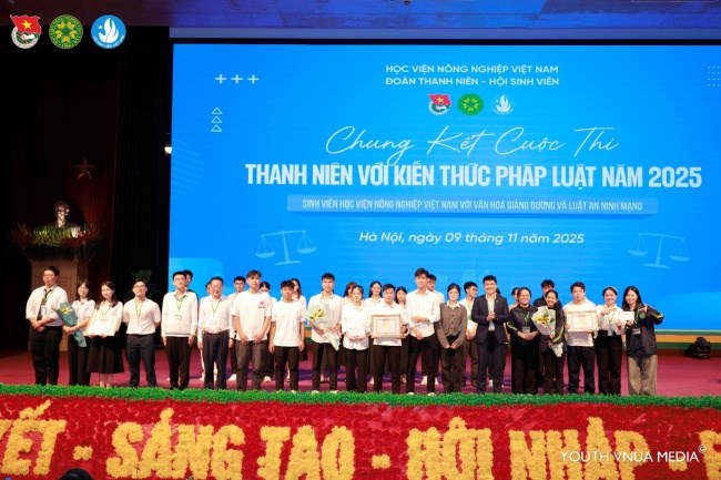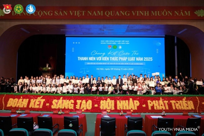 Ngày 09/11, tại Học viện Nông nghiệp Việt Nam, Đoàn Thanh niên - Hội Sinh viên Học viện tổ chức Chung kết Cuộc thi Thanh niên với kiến thức pháp luật năm 2025, thu hút hơn 1.500 đoàn viên, sinh viên tham gia. Đây là hoạt động thiết thực nhằm hưởng ứng Ngày Pháp luật nước Cộng hòa xã hội chủ nghĩa Việt Nam (09/11).