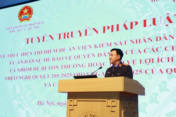 Phát biểu khai mạc Hội nghị, đồng chí Phùng Xuân Giang - Bí thư Chi bộ, Viện trưởng Viện Kiểm sát nhân dân khu vực 5, Thành phố Hà Nội nhấn mạnh, Nghị quyết số 205/2025/QH15 của Quốc hội là văn bản pháp lý có ý nghĩa đặc biệt quan trọng trong giai đoạn hiện nay, đánh dấu bước thí điểm trao quyền cho Viện Kiểm sát nhân dân khởi kiện vụ án dân sự nhằm bảo vệ quyền dân sự của các nhóm yếu thế và lợi ích công. Đây là bước tiến lớn trong tiến trình xây dựng, hoàn thiện Nhà nước pháp quyền xã hội chủ nghĩa Việt Nam, góp phần khắc phục những khoảng trống trong bảo vệ lợi ích công, bảo đảm pháp luật được chấp hành nghiêm chỉnh và thống nhất.