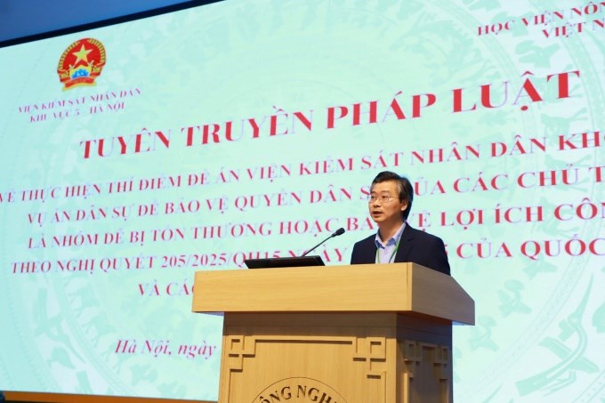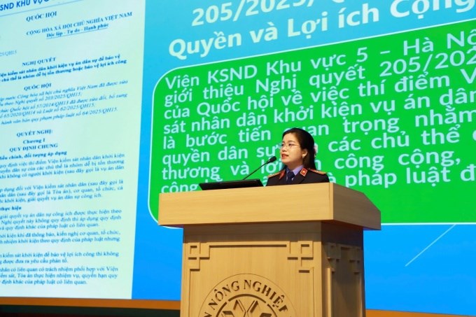 Tại Hội nghị, đại diện Viện Kiểm sát nhân dân khu vực 5, Thành phố Hà Nội đã giới thiệu những nội dung trọng tâm của Nghị quyết số 205/2025/QH15 của Quốc hội về thí điểm Viện kiểm sát nhân dân khởi kiện vụ án dân sự để bảo vệ quyền dân sự của nhóm dễ bị tổn thương và lợi ích công cộng, qua đó giúp sinh viên nhận thức rõ hơn về vai trò của các cơ quan tư pháp trong bảo vệ quyền con người, quyền công dân và lợi ích của Nhà nước, xã hội.